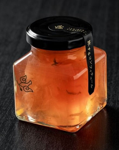 レモンで作ったジュレにハイビスカスティーを加え、桜の花びらを散らした華やかなコンフィチュールです。